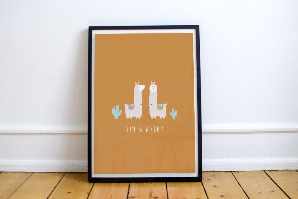 Les deux petits lamas sont donc les stars de ce faire-part de naissance et ils ont également été déclinés en poster personnalisé pour venir décorer la chambre des jumeaux !