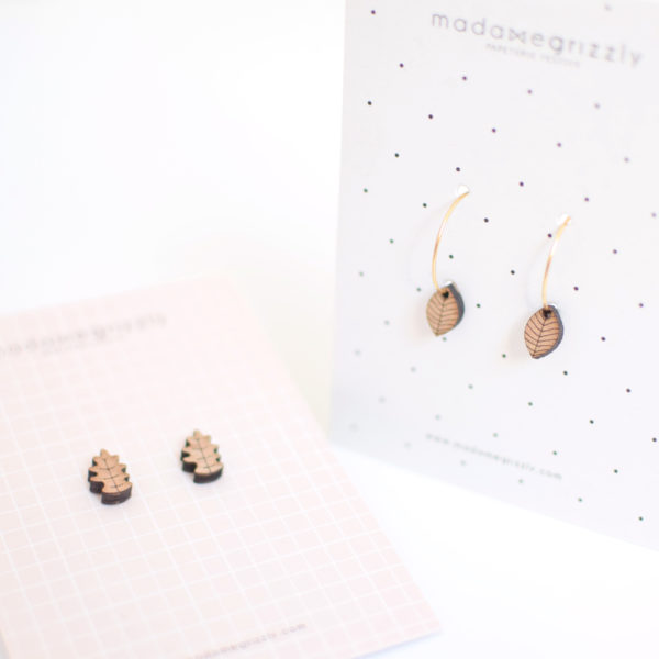 Boucles d’oreilles créoles en bois « Feuille » En acier inoxydable doré Fabriqué en Belgique