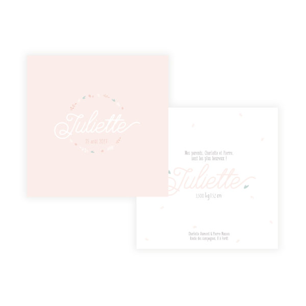 Imprimé en couleur recto et verso, le faire-part « Wild Life » est disponible en format 10×15 cm ou en format 12×12 cm, sur différents papiers (lisse, structuré ou recyclé).